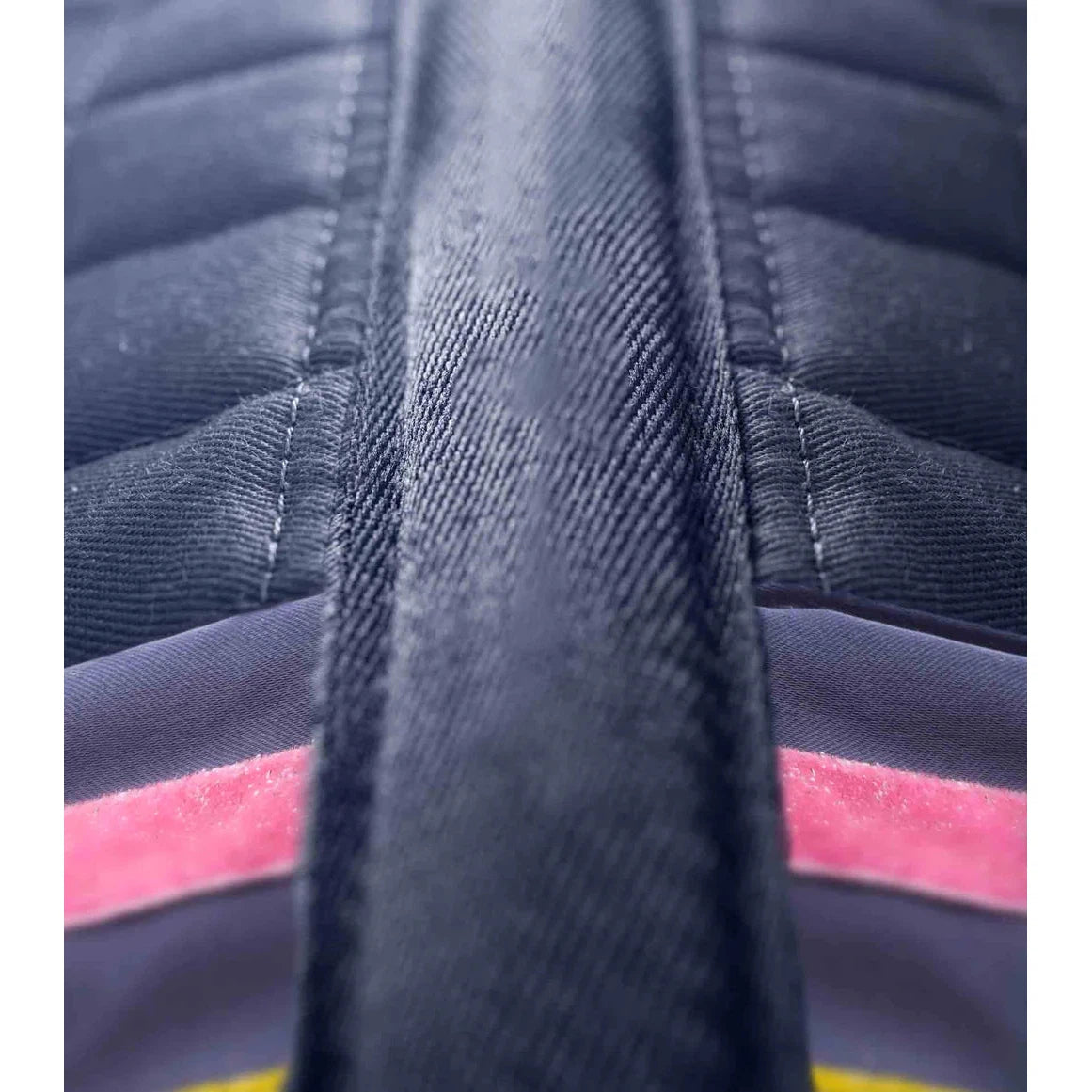 Designed to dazzle this fun GP/Jump pony saddle pad features glitter around the inner binding edge and two contrasting glitter stripes on a navy satin panel towards the rear of the pad to make the colour palette of this pad 'pop'.