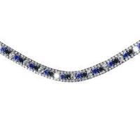 - Elegant deep drop blue, clear and black crystal browband.