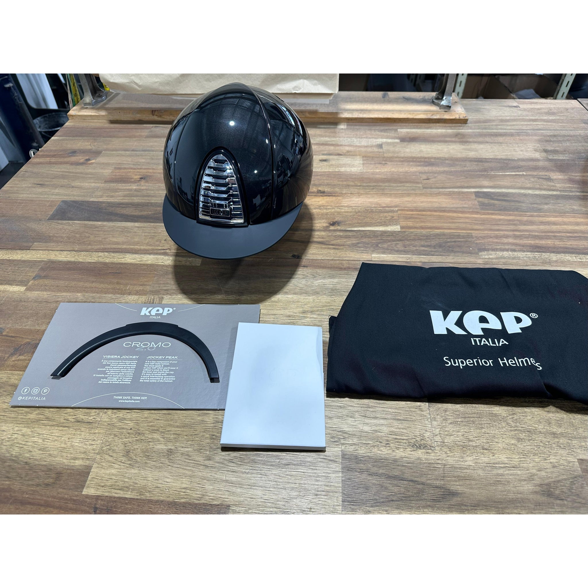 CROMO 2.0 is fitted with an integrated microchip, positioned under the front insert, to which you can upload the rider's health details using the KEP App. In case of need, this can help speed up the provision of first aid. Every helmet also comes with a liner in your size, bag and a jockey visor. Weight: 500 g size M - 535 g size L