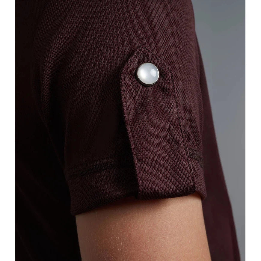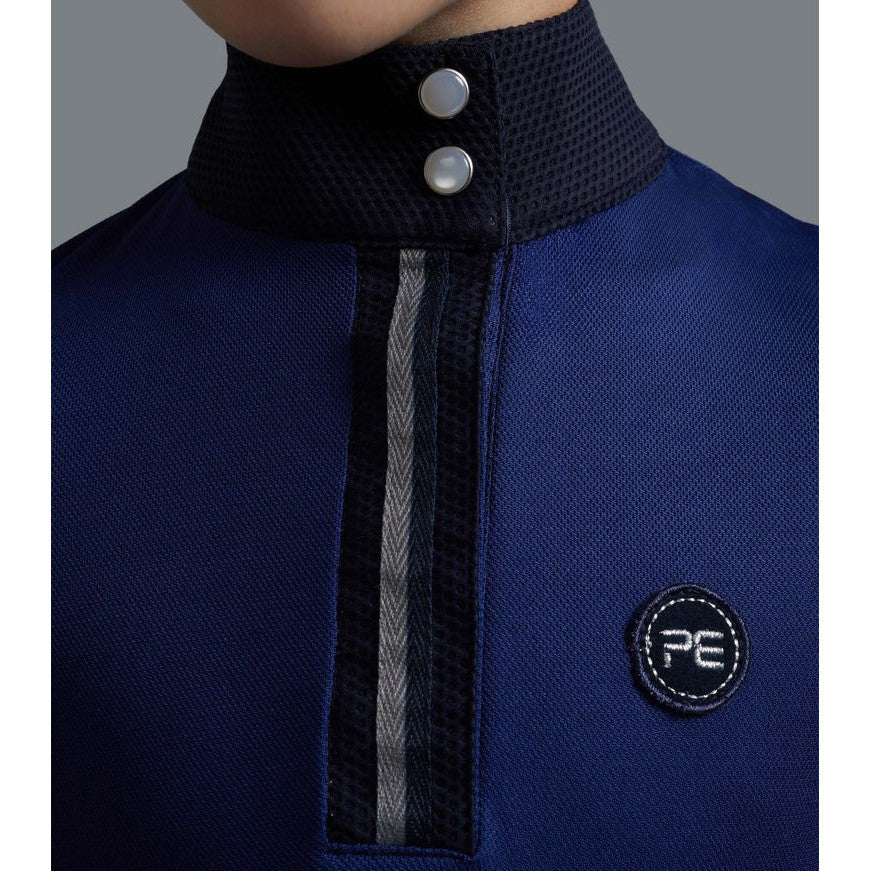 The technical jersey fabric provides exceptional breathability and the slightly relaxed fit offers great airflow whilst following the movement of your body. Accented with a mesh appliqué popper fastened collar with additional faux popper detailing over the short sleeve arm cuff. This is a great option for everyday wear.
