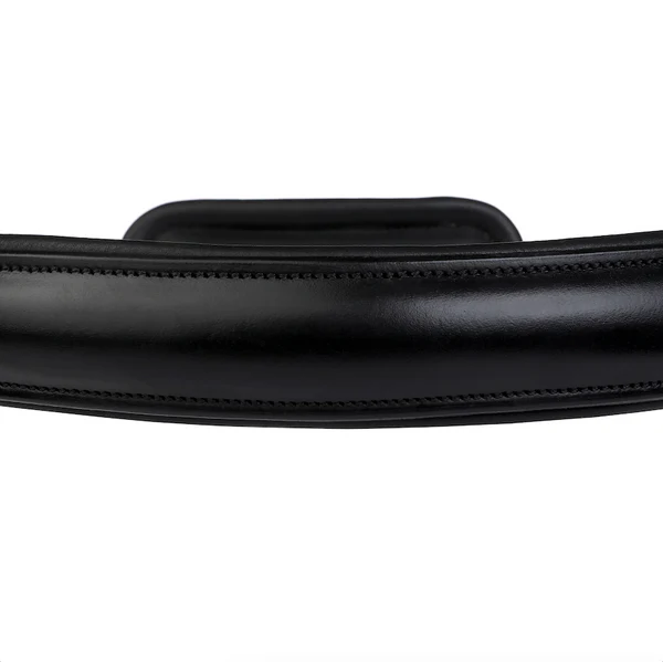 Curved black leather cavesson noseband with gel-padding and butter soft premium leather. This noseband curves slightly up over the bridge of the horse's nose, enabling the higher fit and wider pressure distribution while leaving space for the sensitive nerves on the side of the cheek bones.