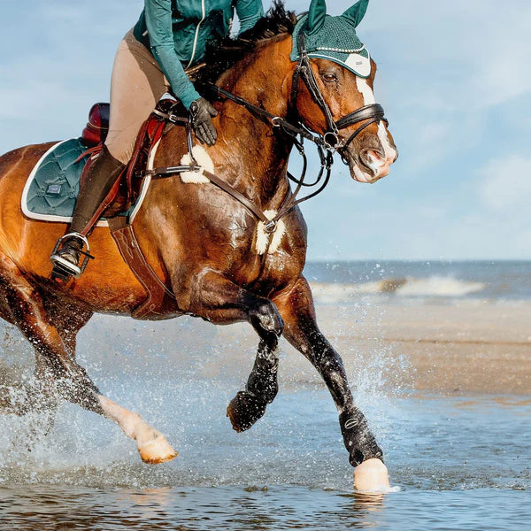 - Gel-padded wither and shoulder straps, along with strap between legs.