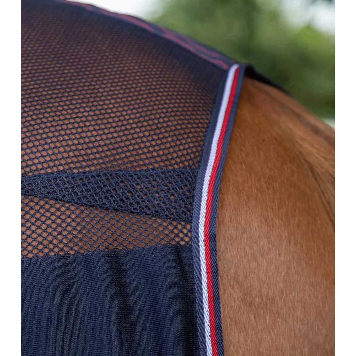 A combination of solid and mesh knit formation, this technically advanced cooler provides a partial coverage of the horse's coat which aids in the absorption and dispersion of moisture while allowing the exit of warm heat energy given off by the horse.