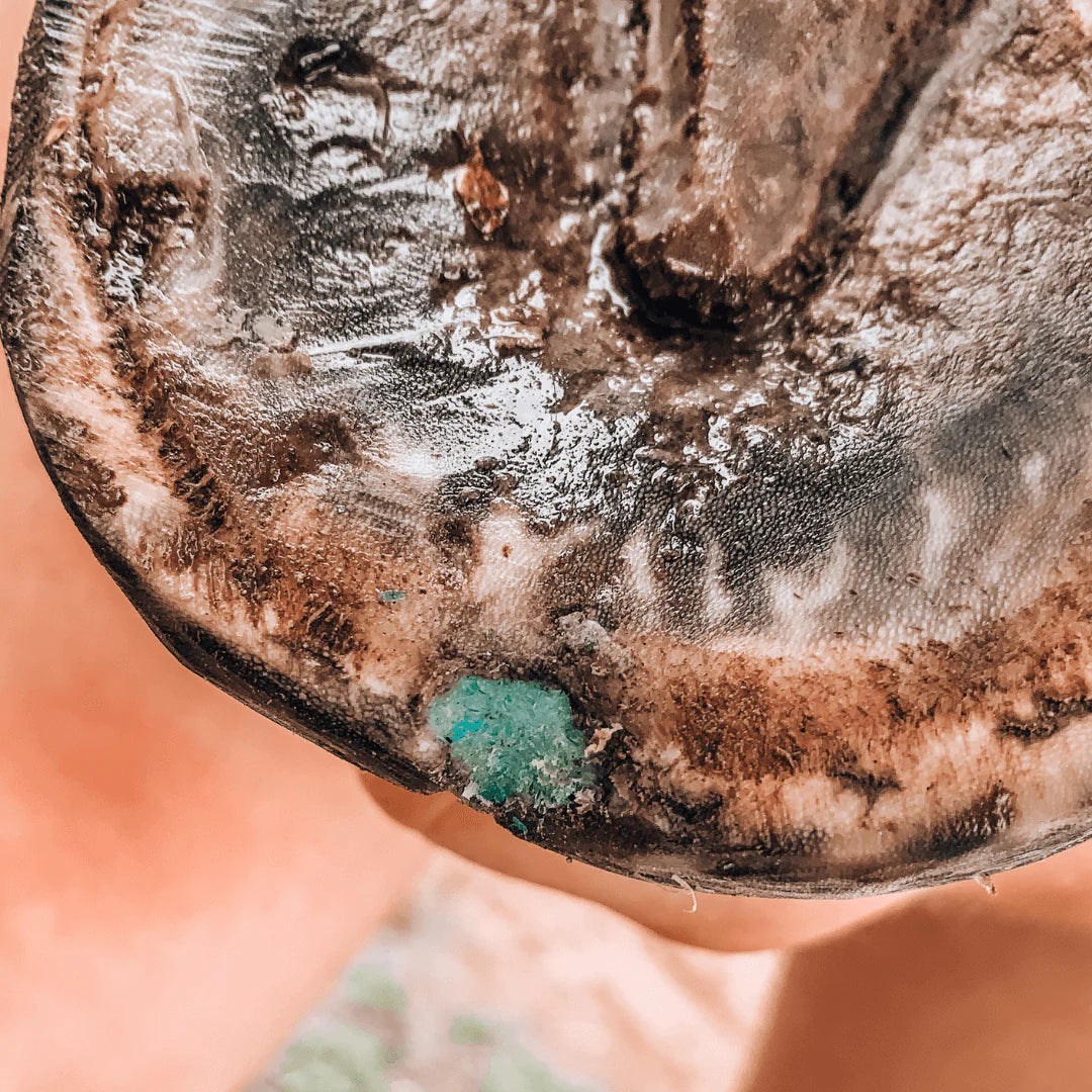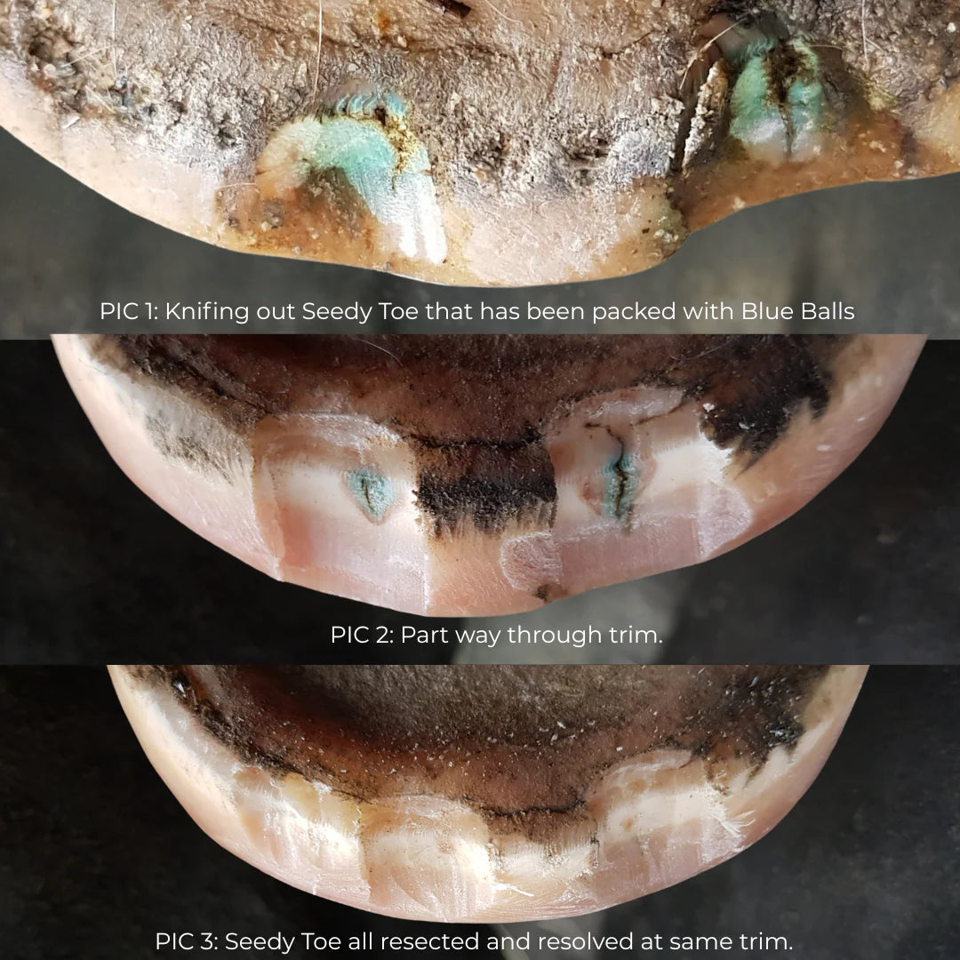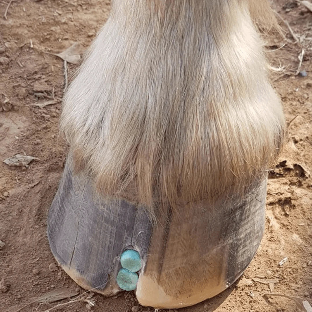 An innovation by a Hoof Care Professional who understands the frustrations of hoof conditions, these balls are the ultimate hoof care hack. Based on natural, cosmetic grade ingredients, copper sulfate and infused with high quality essential oils. They stay put like a boss, repelling funky hoof matter from getting wedged "up your crack".