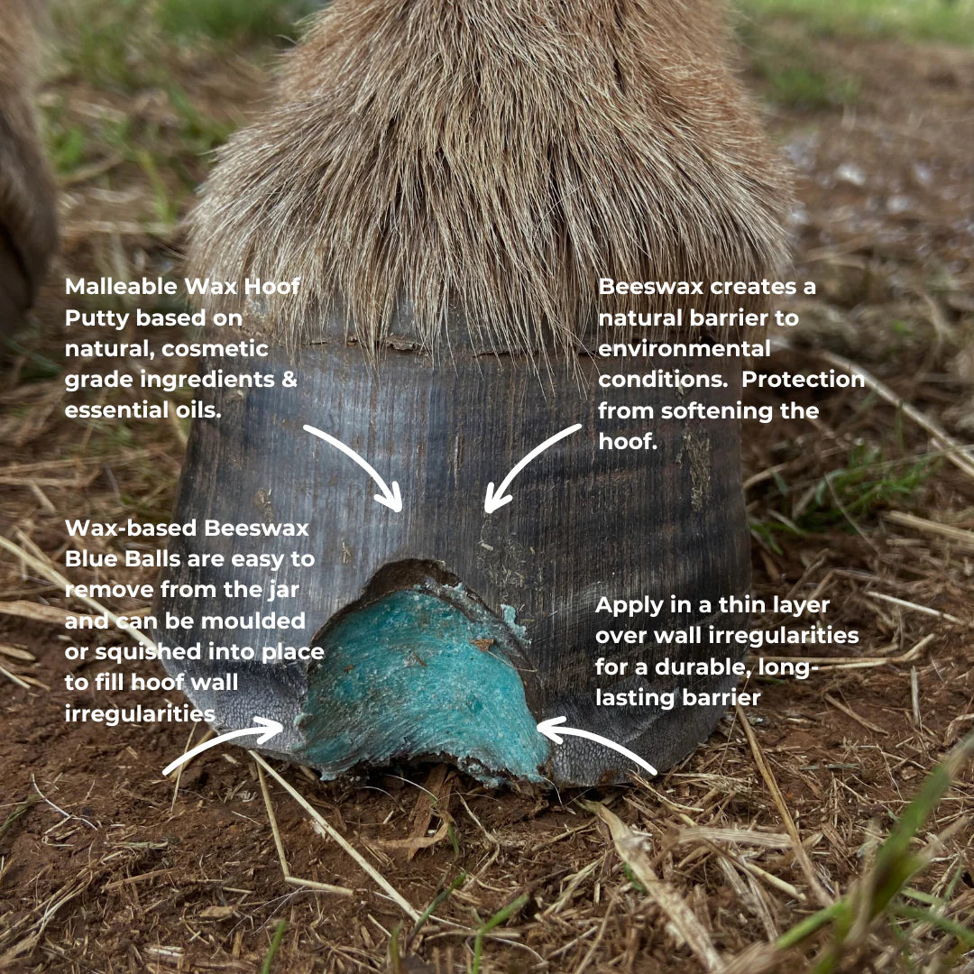 Got hoof wall gaps, cracks, or crevices? We’ve got the balls. Beeswax Blue Balls are designed to be smeared into spaces where muck, moisture, and grime love to gather.