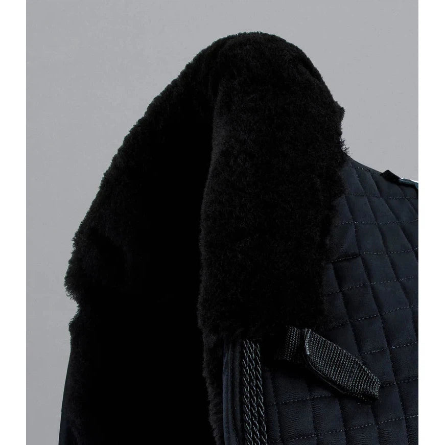 A 600 denier polyester girth cover provides anti-rub protection and double Velcro adjustable straps and adjustable D loop straps help with girthing. Decorative twisted ropes and a European style cut away hem give a stylish and sophisticated look. A truly high class wool saddle pad suitable for everyday or competition use with the advantage of being fully machine washable.