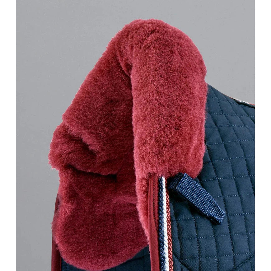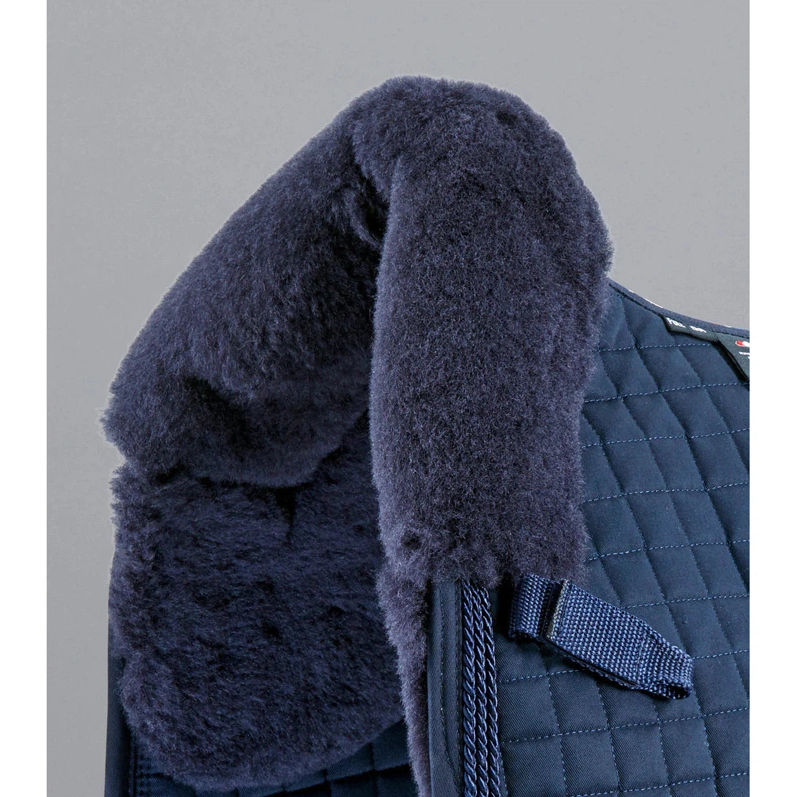 Merino wool knitted onto cotton yarn gives you all the wool you need with no skin attached. The natural fibres of wool are less likely to cause skin reactions or allergies. Wool also has the ability to absorb up to 30% of its own weight in moisture, keeping your horse dry and comfortable under saddle. Real wool is still one of the most technically advanced materials in the world and probably the best you can use under a saddle pad.