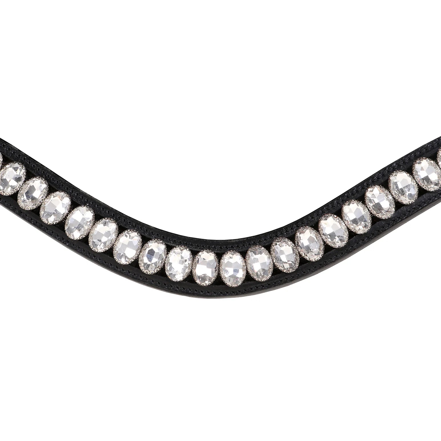 The Diva features a browband of Austrian stellux crystals, set into an elegantly curved leather band. The browband features an easy change system, concealed by a silver satin button.