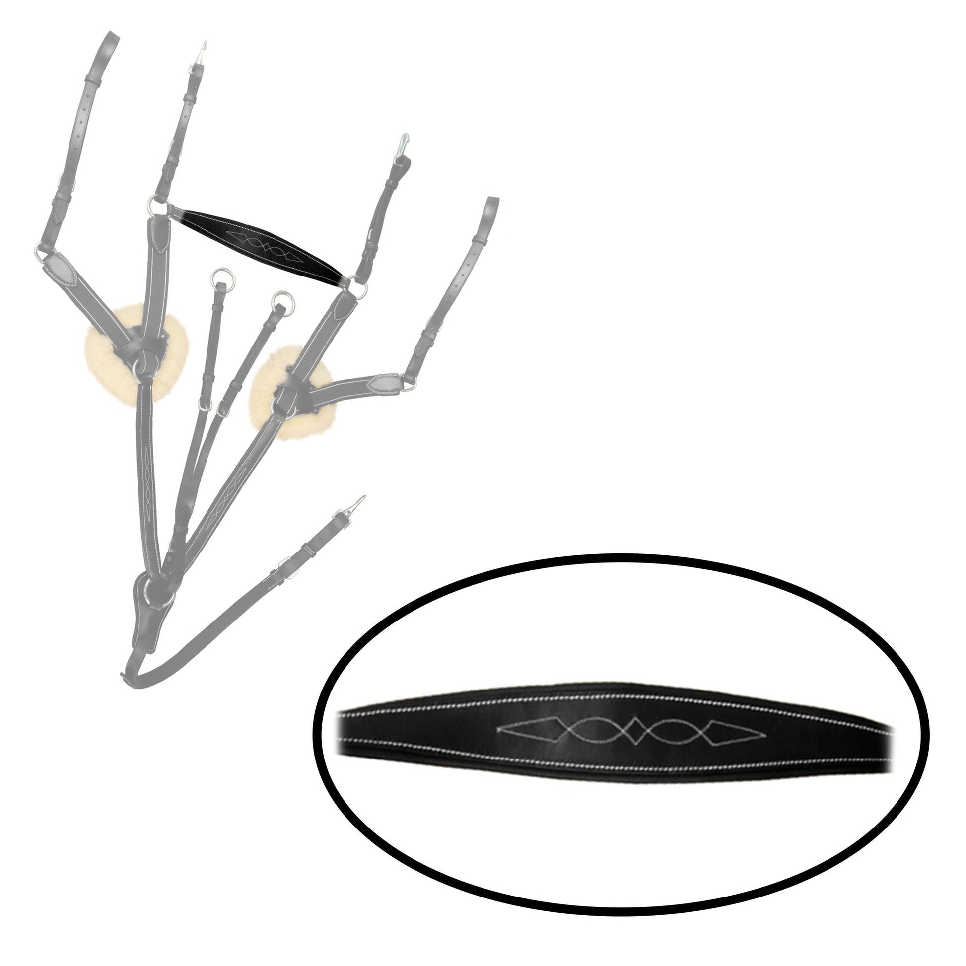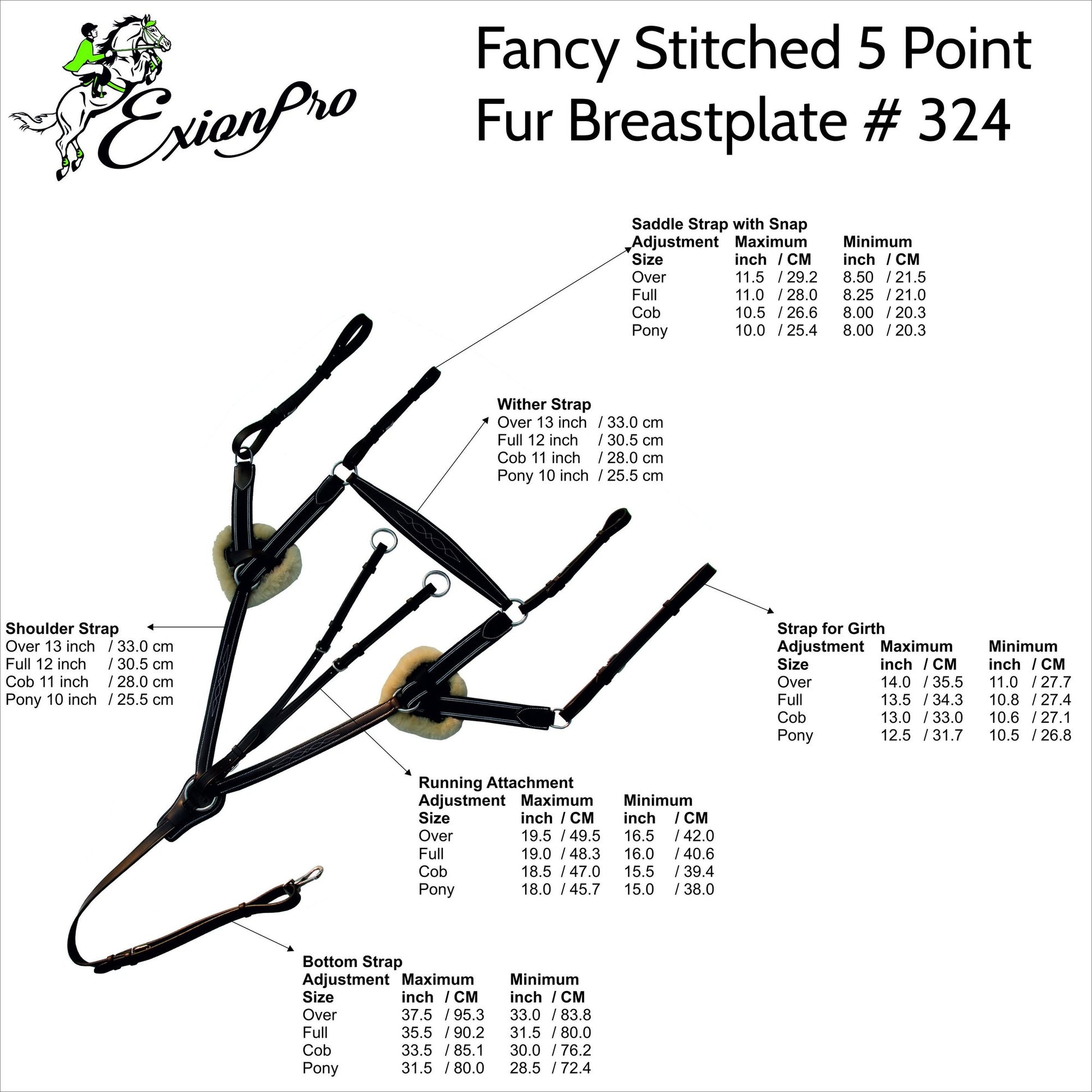 - Beautiful 5 point breastplate with fancy stitching and navy elastic with white stripes.