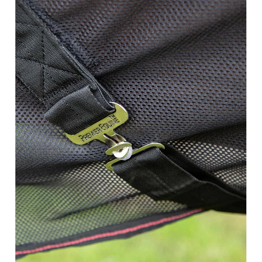 The technical function of this mesh cooler works on the basis of allowing the dispersion of warmth and the transportation of moisture while maximising breathability to aid drying. The Vents is a lightweight solution to cooling your horse in warm conditions, particularly effective after intense exercise/training, traditionally used in racing and high-octane equestrian sports. A cooler that aids in lowering the horse's temperature while applying various cooling methods imperative to the horse's wellbeing and after performance recovery.