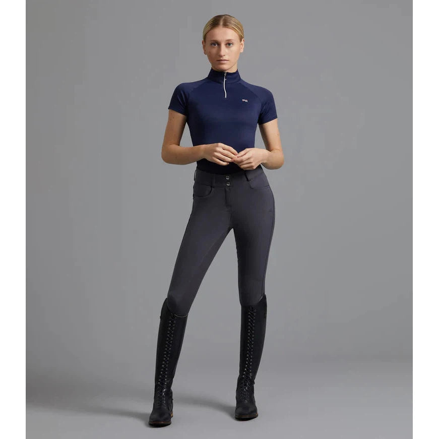 A technical gel full seat has been incorporated - helping to provide additional security in the saddle. The slightly wider waistband and elegant 'v' cut design at the rear provides flattering fit and finished with a classy double-stud detail.