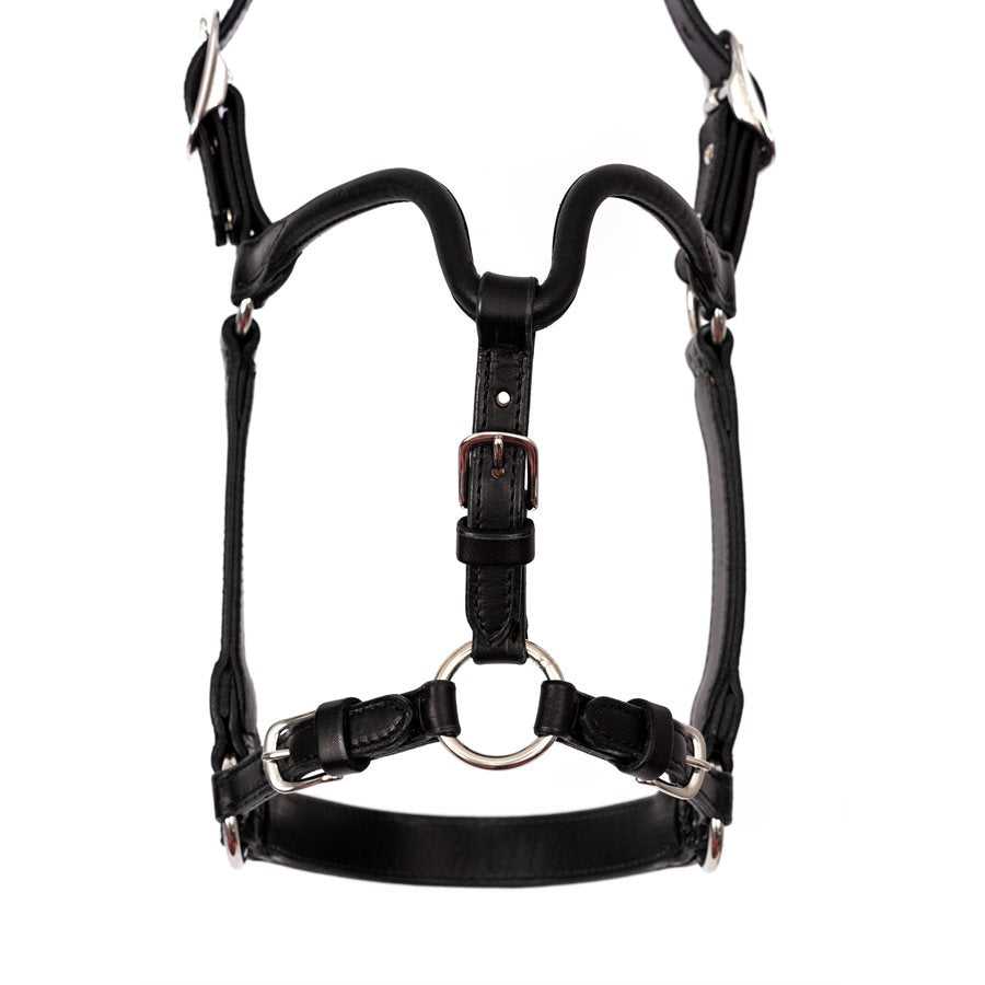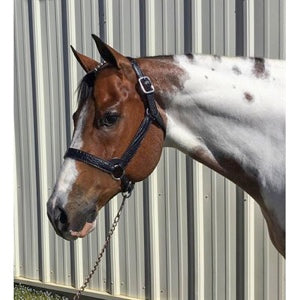 - The halter is finished with stainless steel hardware, a two-part adjustable chin and adjustable gullet for an impeccable fit. A double buckle crow with removable buckles allows you to add your own silver buckles!